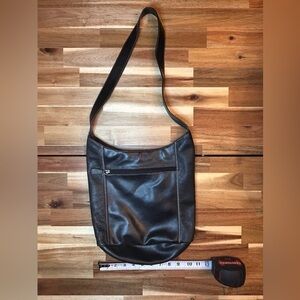 The Sak Original Black Pebbled Leather Satchel Shoulder Hobo Bag Purse Zip Top