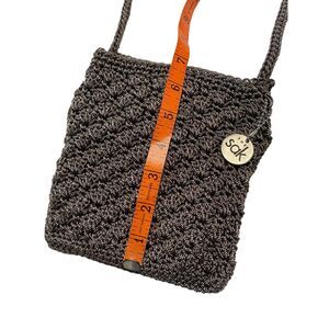 The Sak Pewter Gray Metallic Crochet Crossbody Small Shoulder Bag Boho Purse