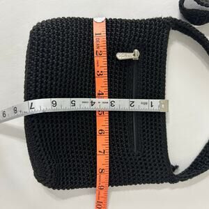 The Sak Black knit/crochet small shoulder bag with zippered compartments