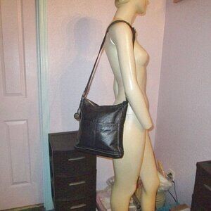 The Sak Purse Black Leather Iris Crossbody Bag Adjustable Strap Hobo Swing Pack