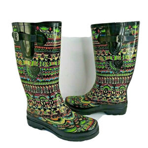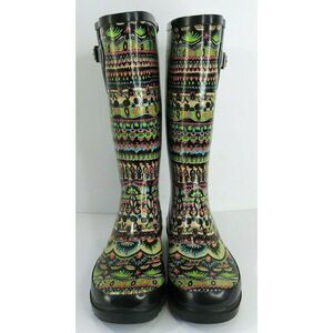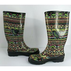 The Sak Sakroots Rhythm Peace Rubber Rain Boots Sz 7M Black Multicolor