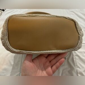 The Sak Sequoia crochet hobo is great whether you're heading to the office or out for some weekend fun. Skillfully handcrafted by artisans with yarns made from recycled ocean-bound plastics. It features a hand-stitched popcorn stitch, single shoulder strap, top zip closure, and metal hardware keychain. One interior zip pocket and two interior pockets. Some staining on the inside of the bag. See pics for all sides of bag.