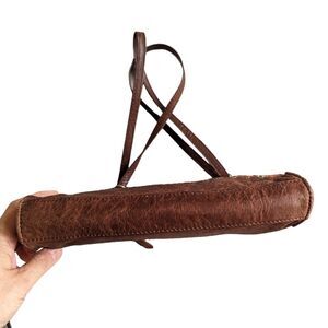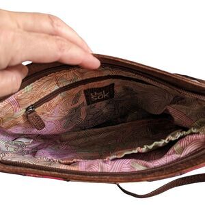 This colorful crossbody bag by The Sak is perfect for any occasion, whether you're traveling, attending a party, or just running errands. The patchwork leather exterior features a striped pattern with accents of the brand's logo, giving it a unique and boho feel. The bag has an adjustable crossbody strap in brown leather and gold hardware, with a maximum drop of 22 inches.