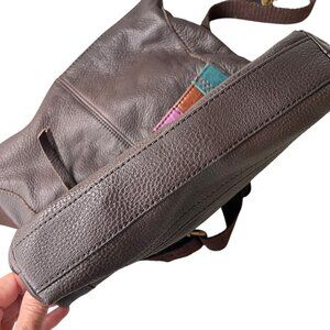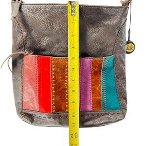 The Sak Striped Patchwork Leather Crossbody Bag Adjustable Strap Red Pink Teal