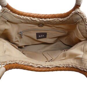The Sak Tan Fishnet Crochet Weave Braided Leather Straps Handbag Tote Purse