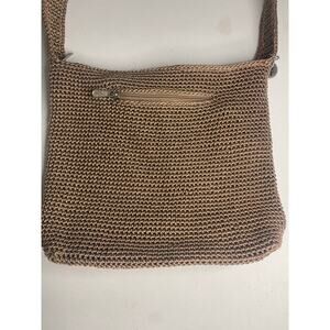 The Sak Tan Woven Crochet Purse Shoulder Bag EUC Brown Boho Handbag