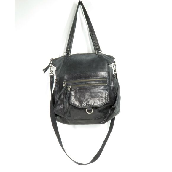 The Sak Venata Leather Convertible Bag Womens Foldover Tote Black
