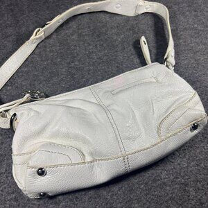The Sak White Leather Satchel Tote Bag Shoulder Purse Silver Rings Slouchy Boho