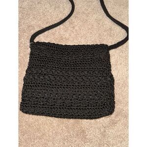 Keywords: The Sak, crochet bag, women's crossbody, black handbag, handcrafted, zip closure, shoulder strap, fabric lining, casual bag, everyday use, pre-owned bag.
