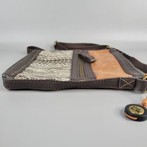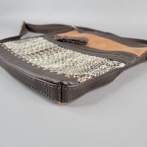 The Sak Womens Crossbody Purse Satchel Bag Snakeskin Leather Brown Size 8"x8"