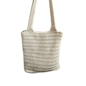 Trendy, bag, purse, crochet, handbag, shoulder bag, boho, hobo, hippie, gypsy, cottagecore, prairie, designer, knit, neutral, minimalist, casual, festival, concert, chic,