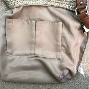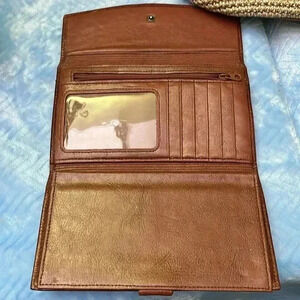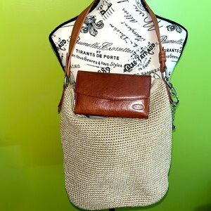 The Sak Woven Tote Bag and Rolfs Brown Leather Trifold Wallet Set