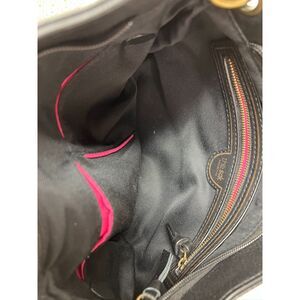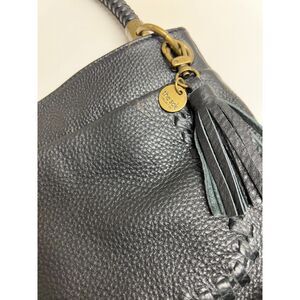 The Sak black pebble leather shoulder bag. The bag has two external pockets, one is zippered. Inside, there is a zippered pocket and several slip pockets. Top zip closure. Brass tone hardware. Braided shoulder strap. Clean inside and out.