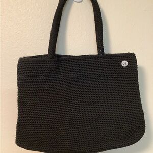 The Sak black woven crochet double handle tote lined interior zip pocket 13”W X height 4” deep tote bag pre owned condition see photos for further details and measurements offers are welcome bundle and save
