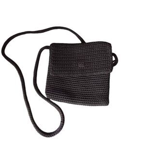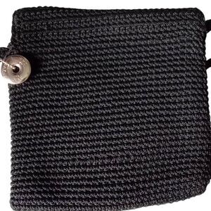 Pre-owned The Sak black knit shoulder , crossbody bag. One large pocket and one small zip pocket inside. Flap magnetic closure. Long non-adjustable shoulder strap.