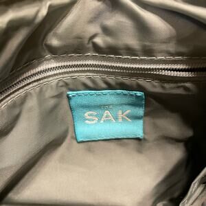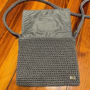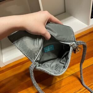 The Sak crossbody purse gray silver sparkle flap bag zipper closure wicker