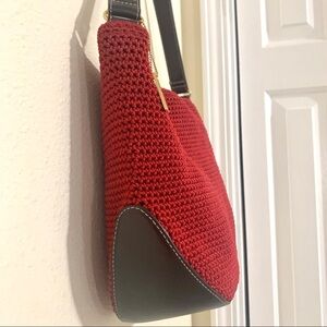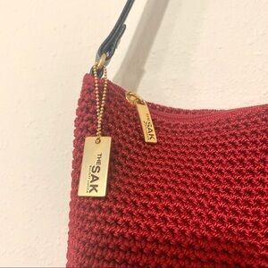 The Sak Crochet Red with Gold Accents and Hardware Shoulder Bag.