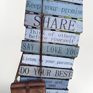 The Sak Iris Leather Floral Wristlet Handbag Purse Wallet Crossbody is a stylish and practical small handbag purse with a beautiful floral pattern, perfect for travel. Made of leather with brass hardware accents, this handbag features a zip closure and a removable strap for versatility. The handbag is lined with canvas and has a western theme, making it a unique and fashionable accessory for women. The Sak Iris model is part of the The Sak Iris product line, known for quality craftsmanship and trendy designs.