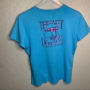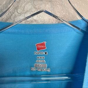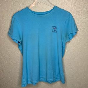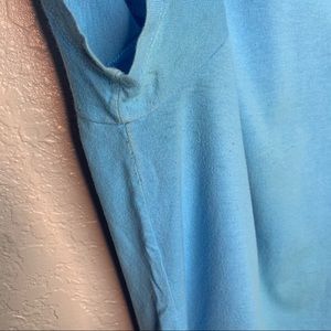 this is a nice T-shirt there are a bit of stains in the pits besides a super cute blue and pink plaid design in the back of the shirt and very comfortable