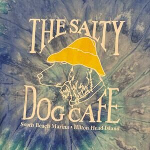 Pre-owned women’s The Salty Dog Cafe t-shirt. Tie dye blue and green. 100% cotton. Size small in excellent condition.