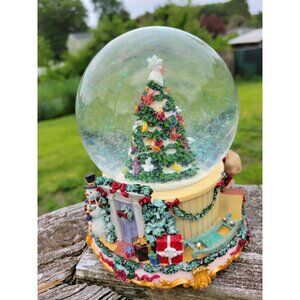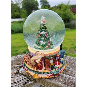 The San Francisco Music Box Company Santa Christmas Tree Christmas Snow Globe is a charming decorative collectible featuring a traditional Christmas tune of "Up on the House Top." This snow globe stands at 6.5 inches tall and 4.5 inches wide, weighing 2 pounds and 15.4 ounces. Made in China before the year 1900, this collectible showcases intricate craftsmanship and is a perfect addition to any holiday decor collection.