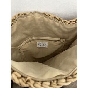 Pre owned the scala collection tan woven straw beaded cross body purse