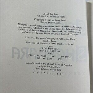 This hardcover first edition book, titled "The Scions of Shannara" by Terry Brooks, is a must-have for fans of the fantasy genre. With 544 pages, this novel is a part of the "Heritage of Shannara" series and features a dust jacket. The book is in its original English language and was published by Random House Publishing Group in 1990. The intended audience for this book is both young adults and adults, and it is perfect for those who enjoy epic fantasy stories. The Scions of Shannara is a narrative type of fiction and is not personalized or signed. This book is a vintage piece from the 1990s era and is manufactured in the United States.