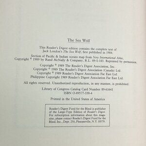 This hardcover edition of "The Sea Wolf" by Jack London is a 1989 Reader's Digest publication. It features classic storytelling with a vintage aesthetic.