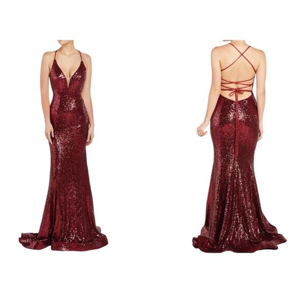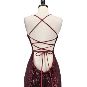 The Secret Dress by Alyce Paris Burgundy Sequin Gown – Size 8 - Open Back Train