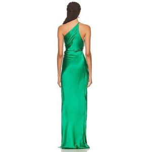 The Sei Asymmetrical Plunge Gown Emerald Green Silk Long