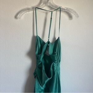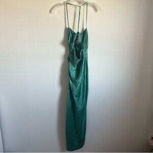 The Sei Cut Out Ruched Silk Midi Dress in Jade Size: 2
