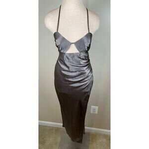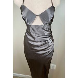 The Sei Cutout Ruched Silk Smog Gray Midi Dress Size 4