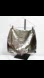 High waisted skort in silver foil leather has a hidden short under a high-low skirt hemline.