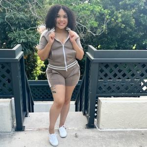 The Set Women's Mocha Cold Shoulder Zip Up Track 2 Pc Short Set Size Large