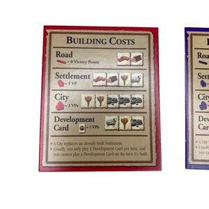 The Settlers of Catan Game Replacement Parts. Building Cost Cards