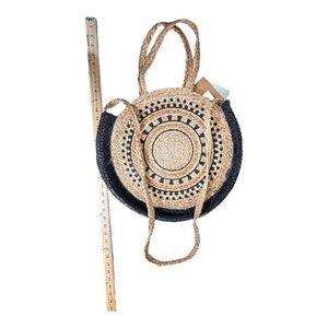 Round, Tan approx 16” woven shoulder bag