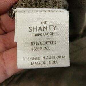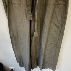 The Shanty Corporation Cotton Flax Utility Sleeveless Jumpsuit in Sage Green is a stylish and versatile one-piece outfit designed for women in size small. With a V-neckline, button closure, and wide-leg silhouette, this jumpsuit is perfect for various occasions including travel, activewear, parties, casual outings, formal events, workwear, and business meetings. Made from a comfortable and breathable blend of linen, cotton, and flax, this lightweight jumpsuit features a waist tie, pockets, and a belted design. Ideal for summer, fall, and spring, this classic chic jumpsuit exudes an island vibe and is machine washable for easy care. In Excellent Pre-Owned Condition. Please pay attention to the measurements, this is final sale no return for reason of measurement except the product not like the description when you receive.