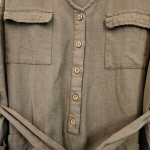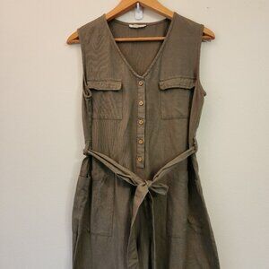 The Shanty corporation Cotton Flax Utility Slvless Jumpsuit Green Women S Chic