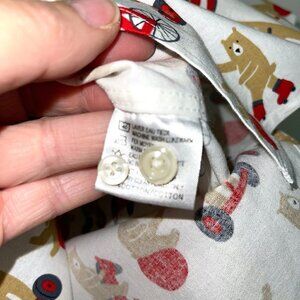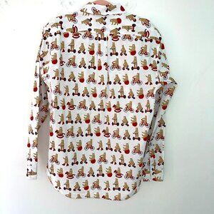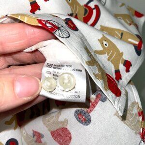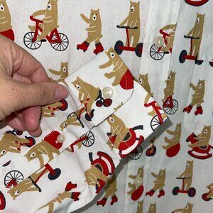 Whimsical circus bear print shirt which is marked XL, but this is made in Japan so may run smaller.