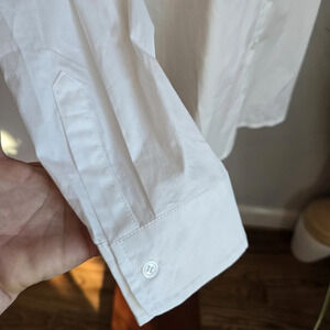 The Shirt by Rochelle Behrens, NWT, Classic White Tassel Cotton Button Front Shirt, Size XL