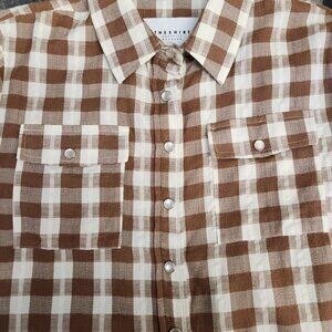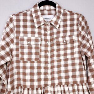 The Shirt by Rochelle Behrens Babydoll Shirt Dress Small Snap Button Up Plaid