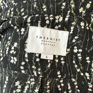 The Shirt by Rochelle Behrens Black Floral with Ruffle Detail, Semi-Sheer, Large