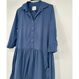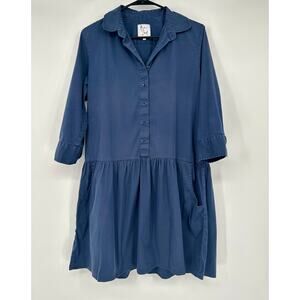The Shirt by Rochelle Behrens Drop-Waist Shirt Dress Size L Navy