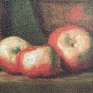 Beautiful canvas print version of Jean-Baptiste-Simeon Chardin's still life, 'The Silver Goblet” (Silver cup with Apples and a Bowl). Professionally mounted in a lovely gold detailed frame with felt boarder trimming the piece. The canvas print features a high-quality crackle effect, also known as craquelure.