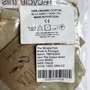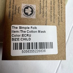The Simple Folk Organic Cotton Childrens Face Mask Ecru New.