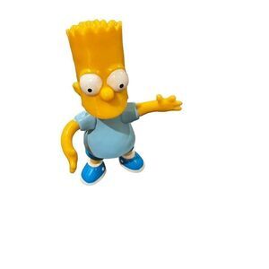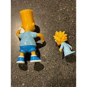 This cool vintage bundle are vinyl figures of The Simpson from 1990. Bart has bendable arms. This figures are a replica of the popular figures from the Fox Network "The Simpsons" TV show. The figures are yellow vinyl with blue.