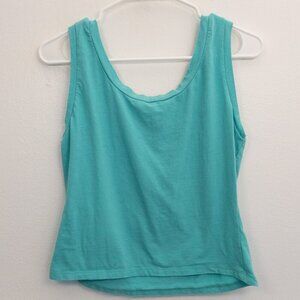 Fun and nostalgic, this Simpsons graphic tank top features the iconic cartoon family on a bright blue backdrop. Made in the USA and dated 2014, this top is perfect for fans of retro pop culture and vintage animation style. Soft cotton blend with a comfy, casual fit.