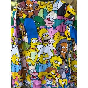 Level up your casual style with this vibrant The Simpsons all-over print sweatshirt. Featuring your favorite characters — Homer, Marge, Bart, Lisa, Maggie, and more — this bold, unisex crewneck is a nostalgic must-have for any fan of the classic animated show.