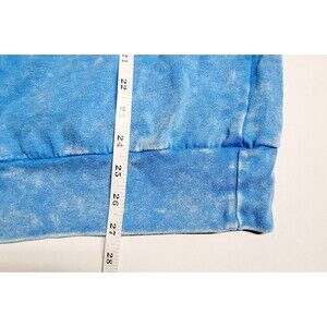 This is a vintage The Simpsons Bart Headplant Skateboarding Blue Acid Wash Sweatshirt made by Mad Engine. The sweatshirt features a tie-dye pattern and a graphic print of Bart Simpson. It has a crew neck and long sleeves, with a pullover closure. The sweatshirt is made of a cotton blend material with a fleece fabric type, and it has a regular fit.