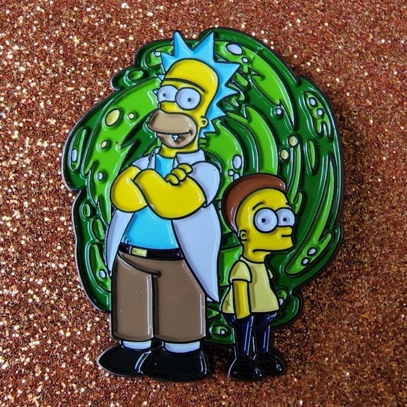 The Simpsons Bart & Homer as Rick and Morty TV Crossover Mashup Enamel Pin